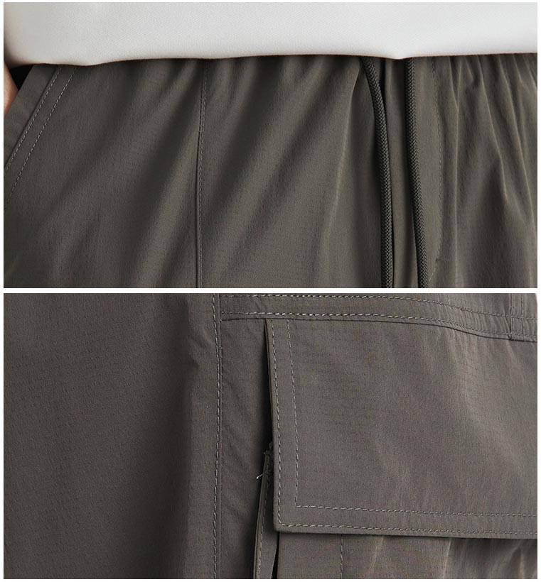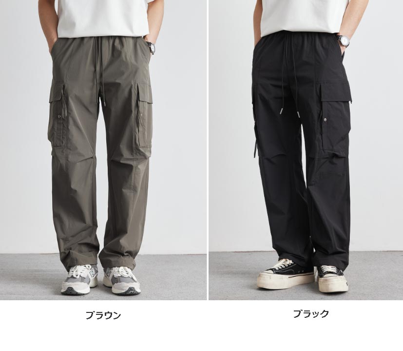 両サイドの大型ポケットで収納力も十分、ゆったりとした履き心地で快適な着用感を実現。